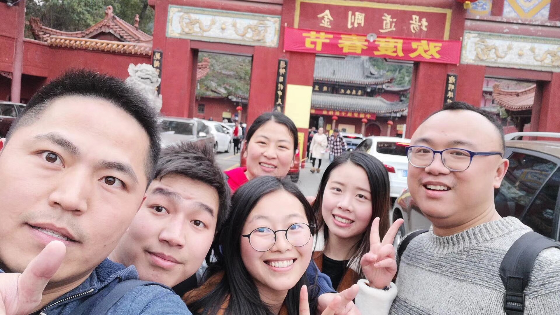 與往年包車前往不同,今年特別安排從龍泉驛地鐵站暴走20余公里徒步前往石經(jīng)寺。大家按編號排成整齊6組人員,互相幫扶,在國道上徒步前行,遠(yuǎn)遠(yuǎn)望去40多人邁著整齊的步伐揮舞著團(tuán)隊(duì)的旗幟,其場景與氣勢讓路人回眸與感嘆。約4小時(shí)的路程里,大家爭先恐后,相互攀扶,一路上看看風(fēng)景、聊聊各自在家過年的趣事和快樂時(shí)光,其樂融融。十二點(diǎn)半左右,全部人員都相繼登抵達(dá)石經(jīng)寺,高高聳立的觀音菩薩雕塑馬上映入我們的眼簾,大家都拿出真誠燒香拜佛,為公司祈福,為自己和親朋好友許愿祝福。大家各處參觀一番后,一起在石經(jīng)寺門前合影留念,陽光和笑臉交相輝映,一片熱鬧歡騰。